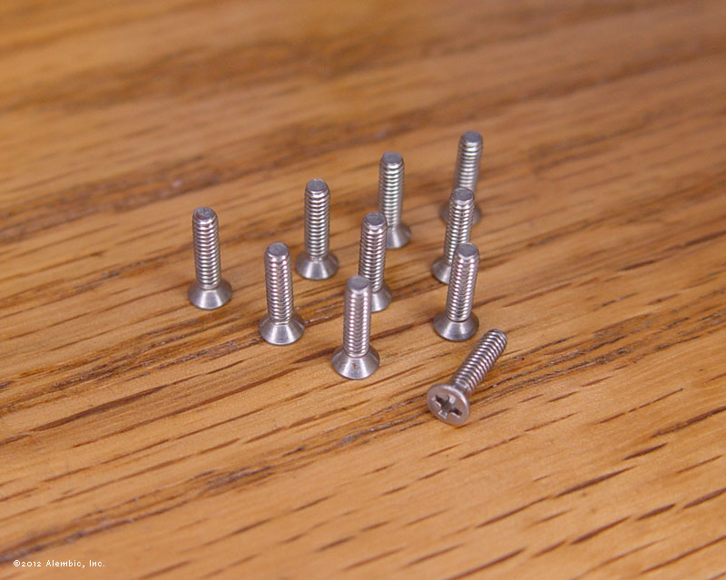 Set of 10 stainless steel screws fits all Alembic backplates and truss rod covers. Some older instruments (made before 1976) used wood screws, so check that you have the threaded metal inserts before ordering.